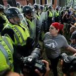 Anti-racist protesters and activists march through the streets of Charlottesville